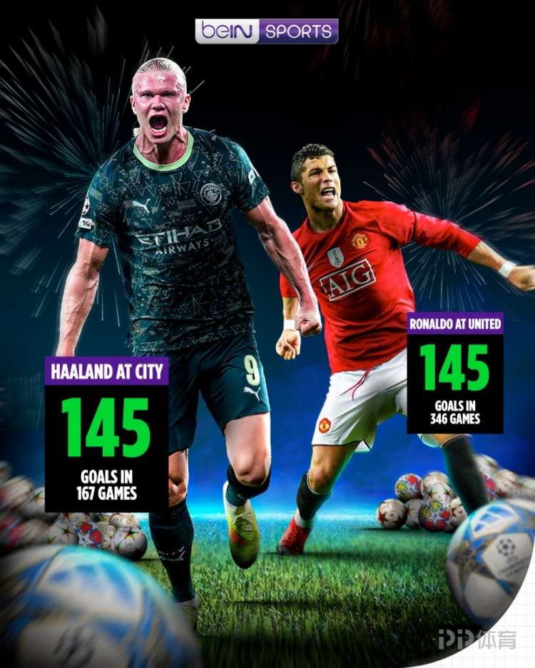 哈兰德曼城167场轰145球 追平C罗曼联346场进球数